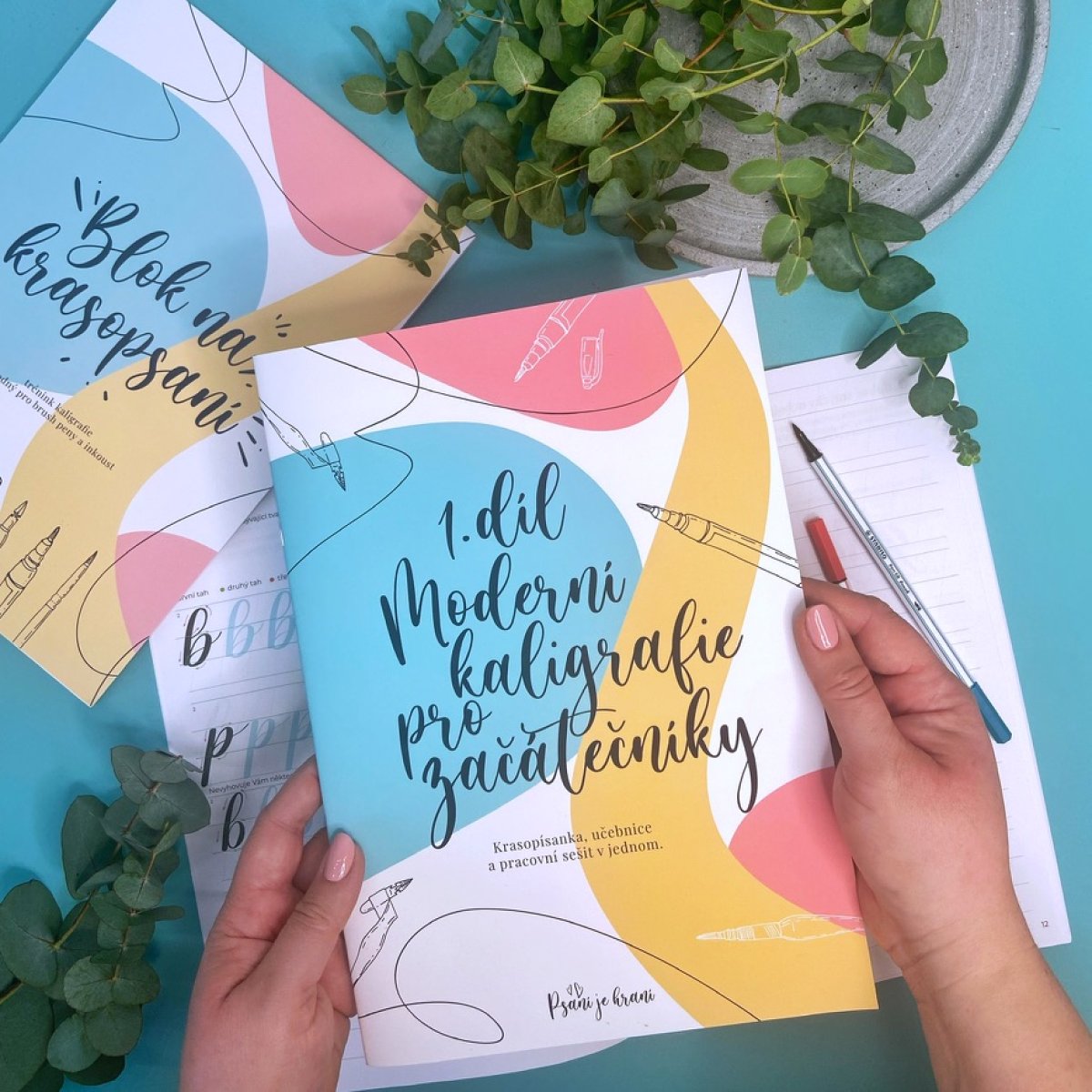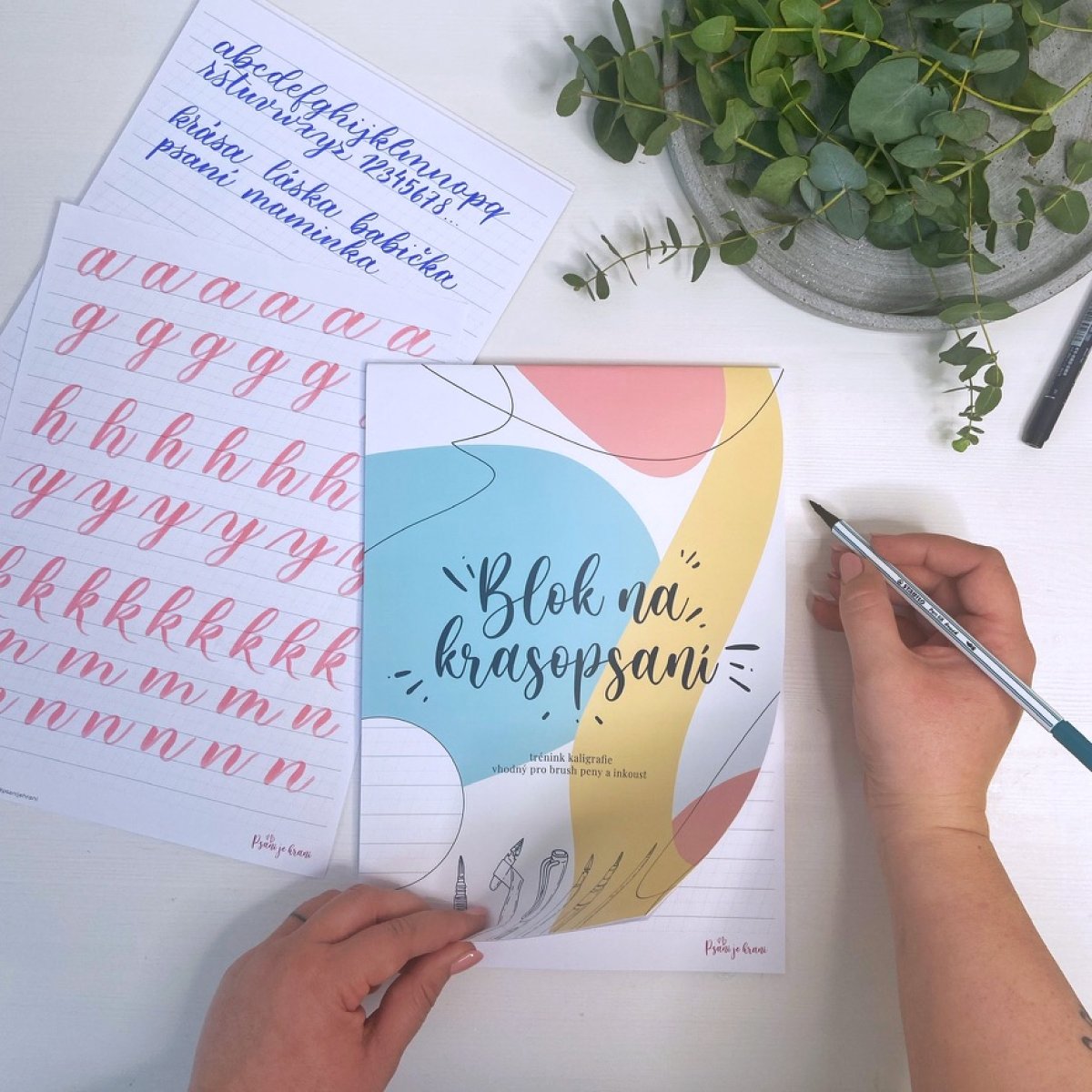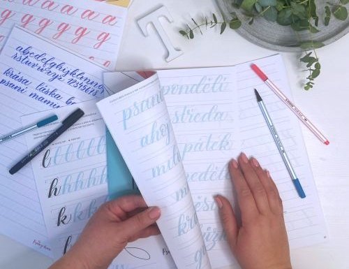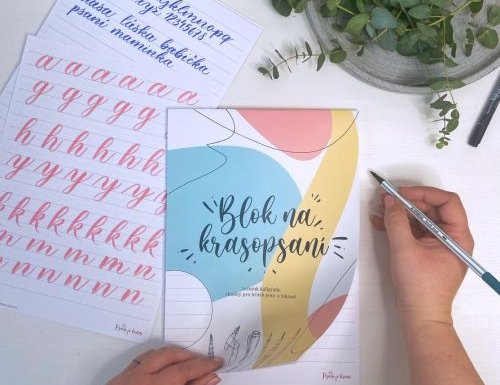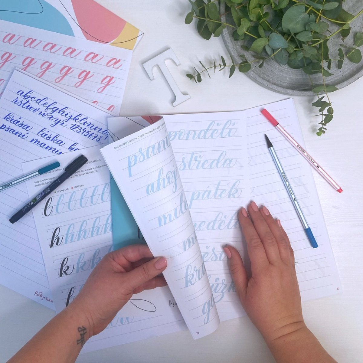 V ceně kurzu je písanka, se kterou budeme na kurzu pracovat, blok formátu A4 a brush pen.